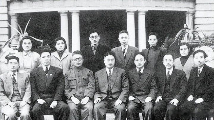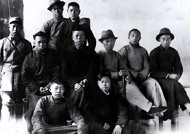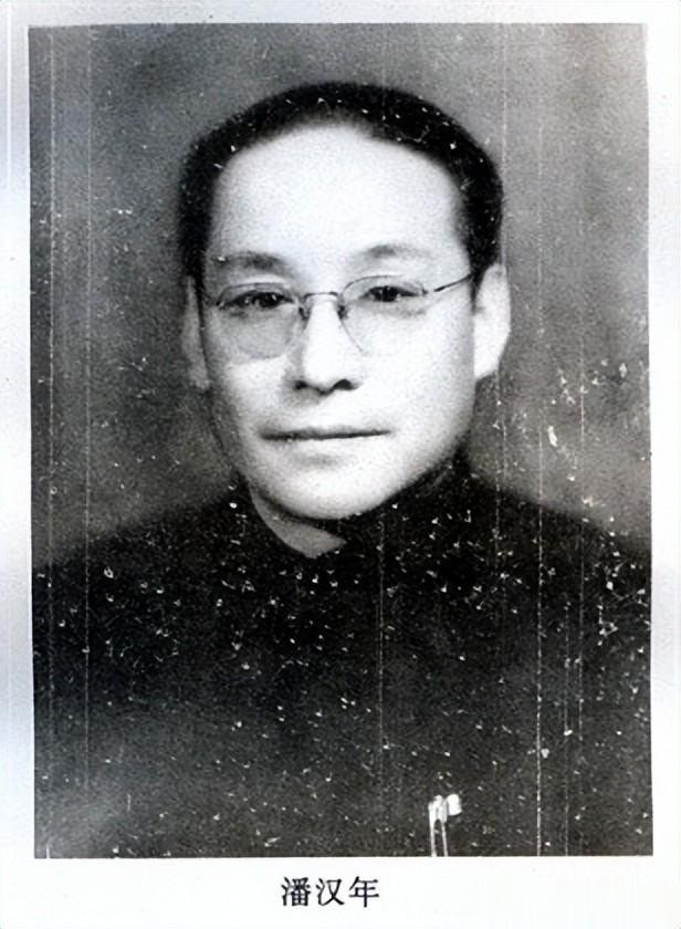 上海解放后潘汉年与部分中共上海地下斗争党组织领导成员合影。前排左起:王尧山、沙文汉、刘长胜、刘晓、潘汉年、刘少文、吴克坚。后排左起:赵先、张毅、刘人寿、张承宗、王清、黄景荷